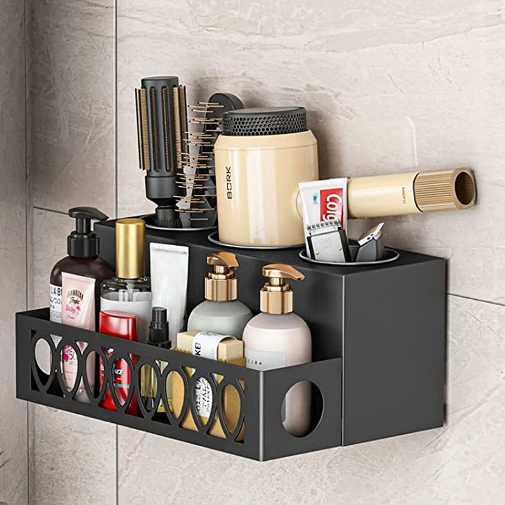 1. Hair dryer storage rack bracket, this rack is waterproof and durable. This transparent bathroom storage rack has compartments that effectively store your favorite hair accessories and cosmetics. When buying this product, you don't need to pay any additional fees, and you can buy a full range of products at once. Is it very cost-effective.